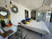 La chambre Comfort Plus est de style boutique. Chaque chambre possède une décoration différente, certaines disposent d'une chambre séparée à l'étage supérieur avec un grand lit double de 180 x 200 cm de haute qualité, une salle de bains privée avec douche, des articles de toilette et un sèche-cheveux. La cuisine est entièrement équipée avec réfrigérateur et micro-ondes et offre un espace plus généreux que notre chambre standard. Pour les réservations anticipées, la durée minimale du séjour dans cette chambre spacieuse est de 10 nuits.